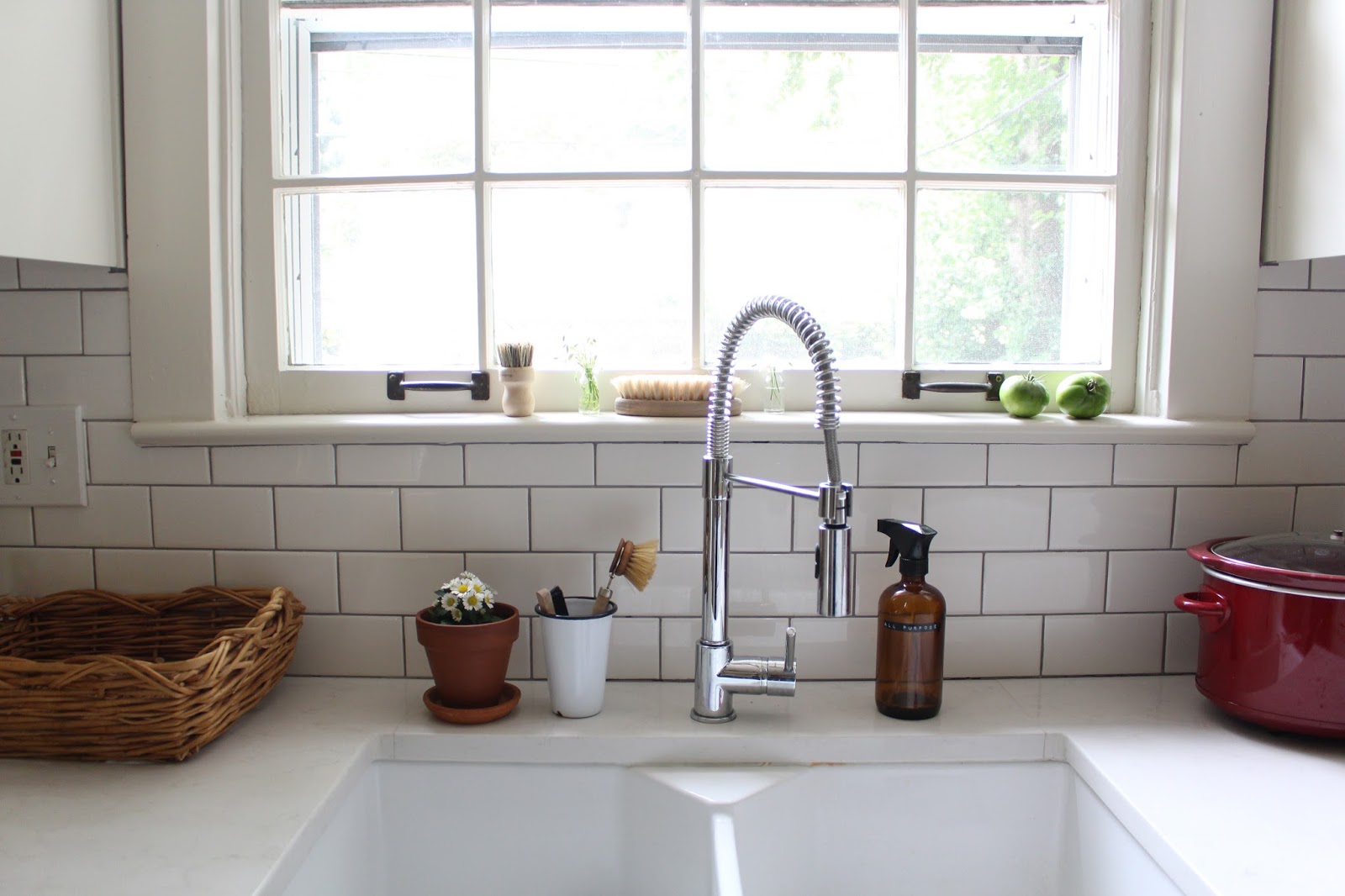 During this time I’ll do a load or two of laundry, adding purification oil to the wash and spraying lavender mist on clothes when they’ve dried. Now that we have three little ones, laundry is a daily task, so keeping up with that is a must for my mental clarity. Aiming for one load a day has been the trick to keeping things manageable around here. And then there’s the bathrooms, my least favorite. I’ll do these one a week, often times neglecting the shower and leaving that for a twice a month job. I should probably scrub the tiles in there more often, but I don’t. On the days that I do get to those tiles, I’ll also wash our sheets and top layers of bedding. Since most of it is white I am able to put it all together using a non-bleach alternative to get them looking really white. The Laundress makes a good one. If it is sunny on days that I get to this chore, I’ll line dry our linens. If not, a good tumble in the dryer is good, too.