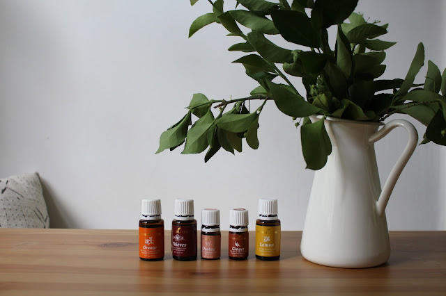 After having set the stage for my cleaning spree, I’ll start with the dishes, do all surface areas, and sweep and mop the floorboards. I’ll put a couple of drops of lemon oil on a warm wet rag and scrub everything down, no counter top being left unscrubbed. Sometimes I’ll substitute thieves oil for this, it just depends on my mood. Lemon helps cut the grease so I tend to use that more often in the kitchen. When moping the floors, I’ll add a few drops of tea tree oil to the mop rag and several drops of orange to make them shine and smell lovely. At the end of my cleaning routine, I’ll soak my brushes in a mixture of vinegar, water, and essential oils (today I used rosemary) to keep them fresh and clean.