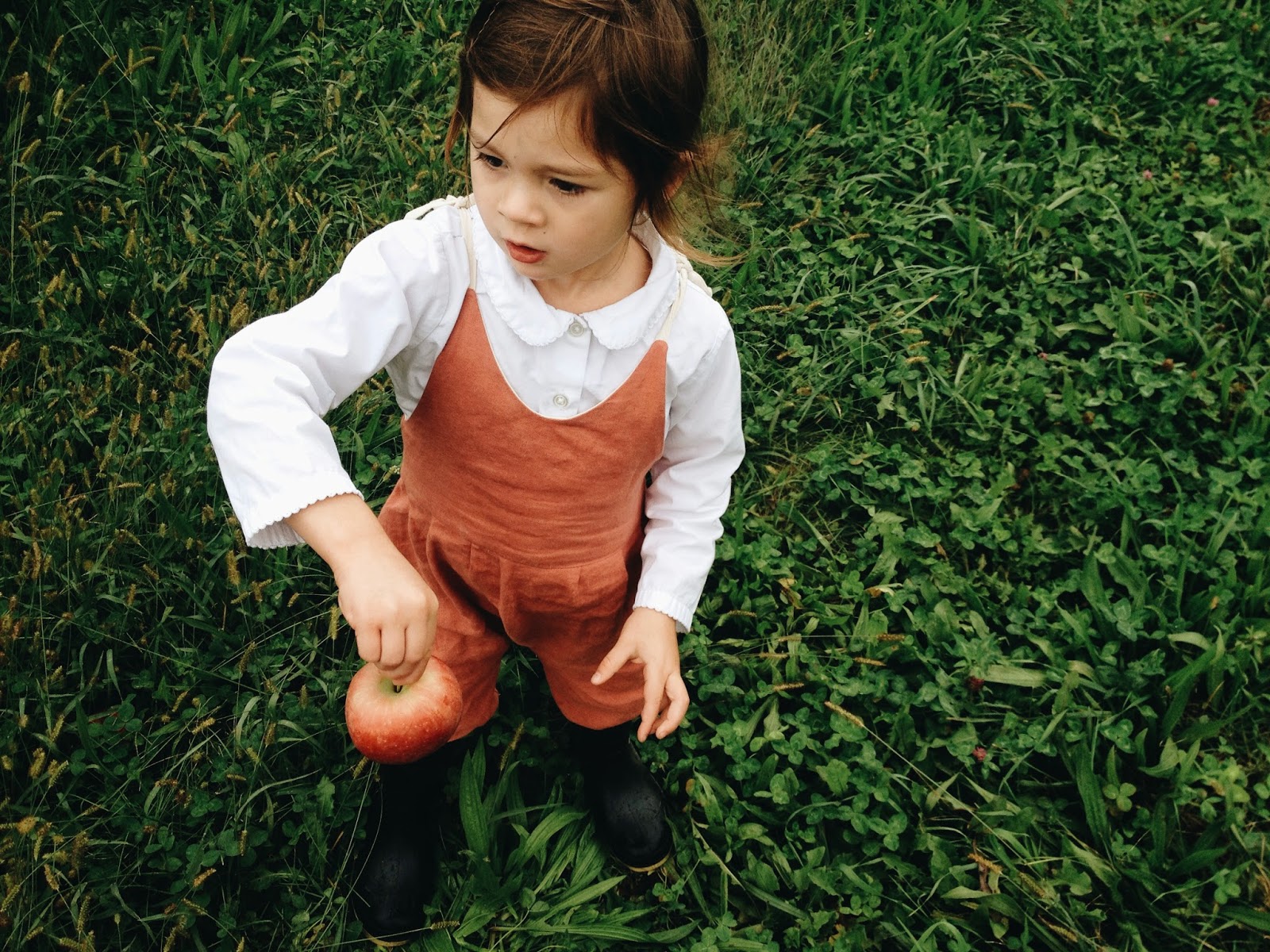 Sometimes you just need to pack up the kids and get out of town to prance around an orchard and pick some apples with your babies and good friends. So that’s precisely what we did and I cannot think of a better way to spend an afternoon. This orchard was one of the most enchanting little pockets of Missouri we’ve ever been to. It was untamed with rows that seemed to go on forever. The morning was a misty one and the apples were ever so abundant, falling off of trees and spilling onto a bed of clovers. Stella ran through the maze of trees, picking red ones, blush ones, and green ones. Theodore, comfortably clung to my hip, munched on a pink lady for about an hour, happy as a clam. I’d plop him in the grass to add some apples to Stella’s growing bag and he’d sit there, his hands clenched tightly around his apple. My heart bursted about a hundred times. Between picking apples, Stella collected rocks and got as dusty as she could possibly muster during our time at the orchard. She picked wild grass, pressed her nose into a few red delicious branches, and never stopped running. Our little girl is a tomboy through and through. Despite her quick pace, she reminds me to slow down and savor life a bit more. In the end, we filled a bag big enough for about five apple pies! I am already dreaming up a lazy weekday morning when my girl and I can roll out dough and perfect our pie crust. I prefer pies with crumbly brown sugar toppings, so that shall be our first. And since there is no such thing as too many pies we’ll be on a baking kick until those suckers are gone.