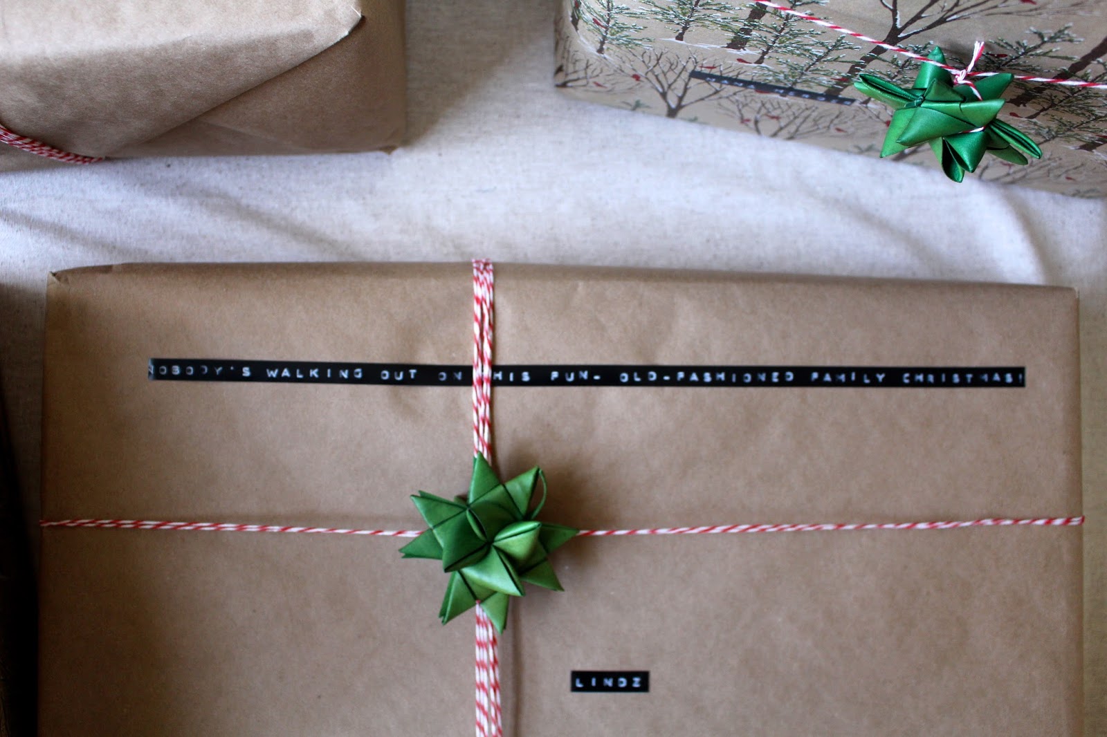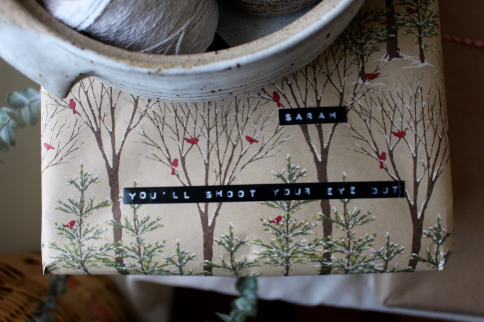 To those looking for a last-minute, handmade, original way to add a bit of comedy to their gift holiday labels, this one’s for you!! I had my embosser laying around from when I made my all-natural essential oil diy gifts the other day and the idea came to me that this nifty tool would make one heck of a cute labeler for our holiday presents this year. I typed out everyone’s name and added a favorite christmas movie quote for a little chuckle on the side. I had a ball coming up with quotes, there are so many good ones out there!