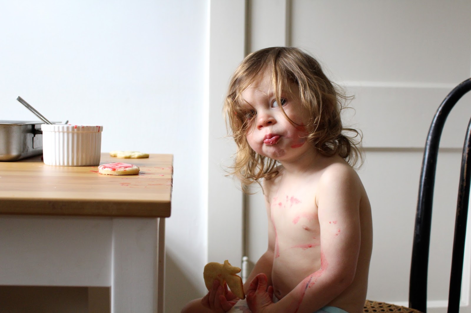 This holiday season was such a good one for us five.  We stayed home here in Kansas City and made our best efforts to do a whole lot of nothing together.  There was lots of lounging.  Lots of home-cooked eats.  Only the very best of slow, winter offerings.  When I reflect back on this season, these past few weeks especially, I feel it can really be summed up into two choice words: baking & play.  But should it be any other way?  I don’t think so either.  There is still a fine dusting of white flour on our kitchen’s hardwoods and a glass container of cookies on the counter for mid-day nibbling.  I made oh, about four loafs of crusty no knead bread, and all of it is gone having been the source of yummy breakfasts along with raspberry jam and salted butter.  And as for play?  Each of the kids had a ball with the magic of Christmas and snow (finally!) and running around with their new toys.  There are dolls and cars strewn about in every room and crafts hanging here and there and new books piled up for reading before nap time.  This season we gathered.  We cozied up.  We wore jammies until supper and then took long baths in the evening.  We diffused pine and eucalyptus and lavender.  We stayed put and lit fires each night and sipped cocoa and watched funny movies.  We drank nice wine, topped our balsam fir tree with an angel Stella made at preschool, and put taped cards of loved ones on our wall in the dining room.  We just really enjoyed each other’s company which is what it’s all about.  It was good and slow and joyful.  Here are a few captures from this special time of year.  I hope yours was wonderful, too.  See ya in the New Year, friends!